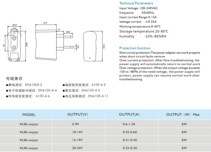 短路保護: 電源適配器在短路解除時(shí)能正常工作恢復